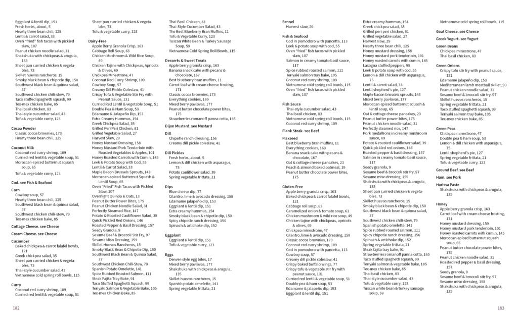 - A comprehensive index highlighting gluten-free, dairy-free, and vegan recipes.